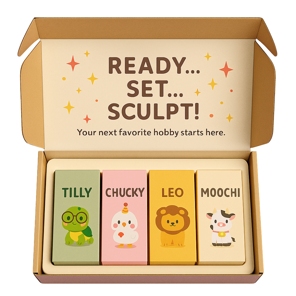 Skip the screens and spark creativity with a sculpting kit that’s fun, calming, and totally beginner-friendly. Everything you need to make 4 adorable clay animals — no stress, just vibes.
